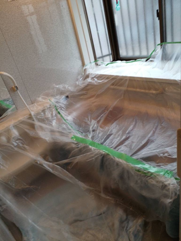 お風呂場を丁寧に保護しながら作業しました👍