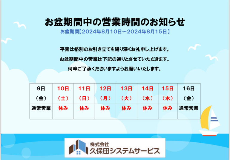 お盆期間中の営業時間のお知らせです🏄♀️🏖