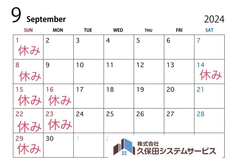 9月の営業日について