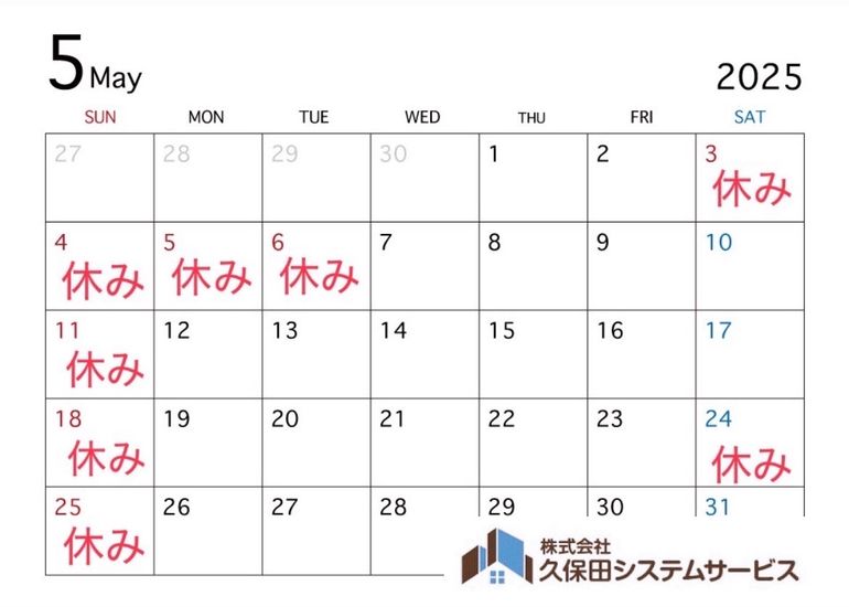 【5月の営業日のお知らせ】