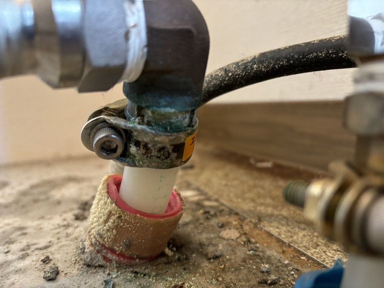 お湯の配管継手から漏水が確認されたので