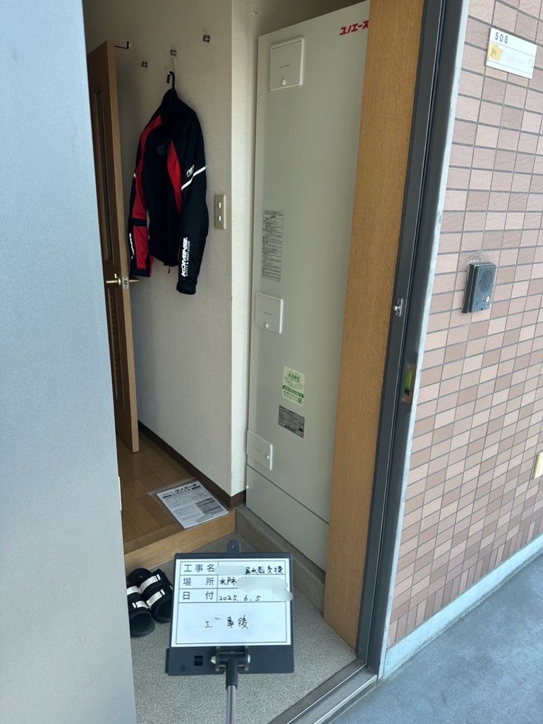 四辺テック製ユノエース温水器の交換工事を行いました♨️